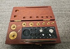 Antique Apothecary Brass Mini Micro Weights Wood Carry Case Box Heinrich Faust