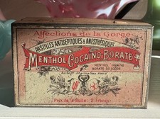 Antique RARE French *COCAINE* Throat Lozenges Apothecary Medicine Advt. Tin 1910