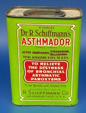 antique quack medicine Dr R. Schiffmann's Asthmador asthma relief burn & inhale