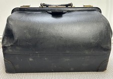 Beautiful Antique 1920's 1930's Black Leather Doctors Dr's Physicians Bag