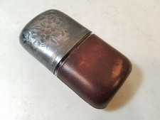 Antique Silver & Leather Hip Spirit Flask With Finely Chased Engraved Cup, 5.5"H