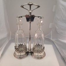 Antique Victorian Era Sliver Plated Four Cut Crystal Bottles Cruet Set