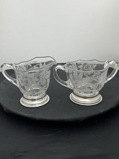 🔵 Duncan Miller Passion Flower Intaglio Etch Sterling Base Cream & Sugar 1940’s