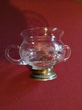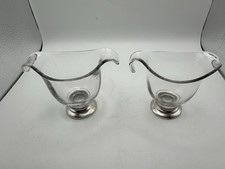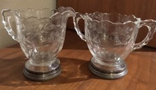 Antique Vintage Midcentury Glass Sterling Silver Base Sugar and Creamer Set