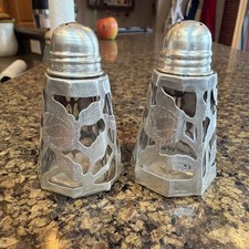 TWO Vintage Ornate Sterling Overlay Sugar And Spice Containers 5” And 7” High