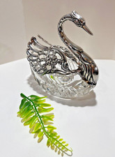 Sterling Silver Wings Crystal Swan Sugar Bowl Germany Beautiful!