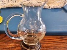 Antique Sterling Silver Overlay Creamer Pitcher Mini Individual Floral Glass
