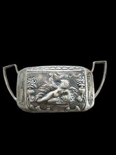 Solid Sterling Silver 2 Handled Sugar Asian Goddess Raised Design Exc 190 Grams