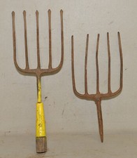 2 antique blacksmith forged eel frog fish gig spear collectible tool lot early