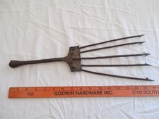 Lg Early 5-Tine Fish Eel Frog Gig Tool Spear Head Hand Forged Fishing Tool Fork