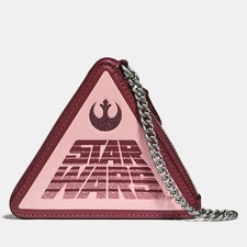NWT Coach Star Wars Triangular Burgundy Leather Zipper Coin Case 88489 NEW