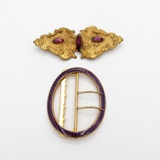 Two Antique Buckles, Brass, Jeweled, Enamel