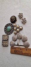 Antique Vintage Jewel Cloak Clasp Buckle Lot Rhinestone Accents High Domed
