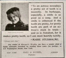 1897 Marie Studholme English Stage Theatre Actress Photo Toothpaste Vtg Print Ad