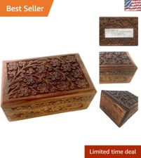 Antique Handmade Wooden Urn Tree of Life Engraving Handcarved Jewellery for -...