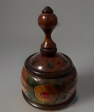 Vintage Carved Wood Urn Decorative Round Lid Multi Tone Flowers Tobacco Box