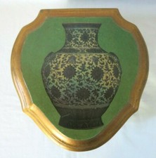 Vtg Heart Shape Lacquered Wood Jewelry Box Gold Black Green Hinge Lid Urn Floral