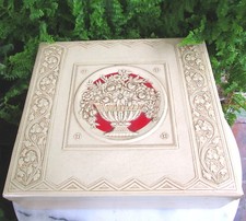ART DECO FAUX LEATHER & CELLULOID JEWELRY BOX WITH EMBOSSED URN OF FLOWERS