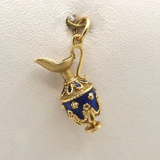 Solid 18k Gold Enamel Greek Urn Jug Vase Pitcher Etruscan Style Charm Pendant