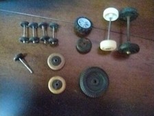 vintage lot of car tires,wheels,axels.PARTS,mixed,PLASTIC, WOOD,WIANDOTTE TOYS