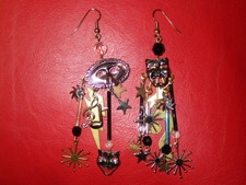 80's Vintage Two-Face Earrings Rockabilly Venetian Music Notes Large Charm