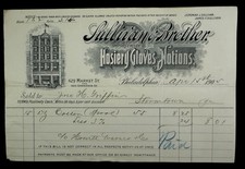 1905 Antique Billhead Sullivan & Brother, Philadelphia PA Hosiery Gloves Notions