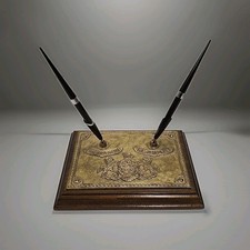 Antique Western Union Postal Telegraph Office Brass & Wood Desk Set Pen Holder