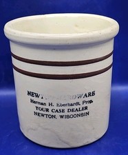 Antique Vintage Stoneware Advertising Beater Jar Crock Newton Hardware Wisconsin