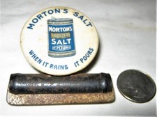 ANTIQUE VINTAGE MORTON IT POURS SALT PENCIL CLIP PORCELAIN CHICAGO INDUSTRIAL