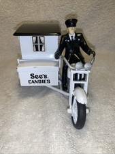 Vintage See’s Candies Motorcycle Delivery Truck Tin Toy w/ Driver 1950s Style