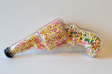 Vintage Glass Candy Filled Toy Pistol Gun Container With Metal Cap