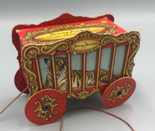 1940s FANNY FARMER Pull Toy CIRCUS WAGON TIGER Vintage Container CANDY BOX