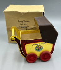 c 1950 FANNY FARMER Maroon Yellow BABY CARRIAGE Vintage Container CANDY BOX Toy