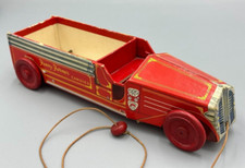 c 1940 FANNY FARMER Pull Toy FIRE ENGINE Truck Vintage Container CANDY BOX Adv