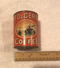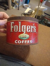 Vintage Folgers Coffee 1 Lb Tin Can With Lid Advertising No Key