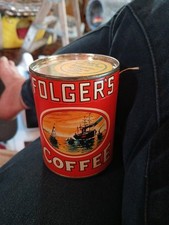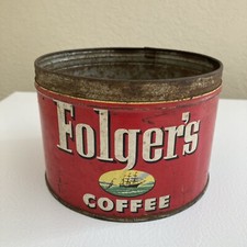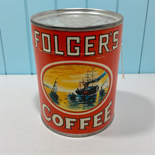FOLGER'S 2 Pound VINTAGE 1950's Coffee Tin Can Advertising with Key on bottom