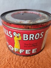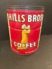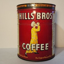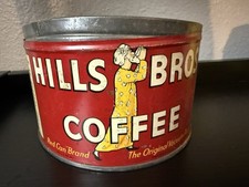 Vintage 1950s Hills Bros Coffee Tin 2 Lb Red Can No Lid Old Advertising Tin
