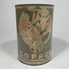 Antique Hello World Coffee Advertising KWKH Radio Tik Can Shreveport LA Rare