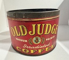 Vintage Old Judge Coffee Can with Owl Advertising Tin - St. Louis MO - Empty