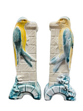 Pair Antique Advertising Premium Vases Birds C. D. Kenny Coffee & Tea Baltimore