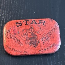 ANTIQUE STAR JG FLINT MILWAUKEE WI Small GENERAL STORE Advertising TIN Scarce