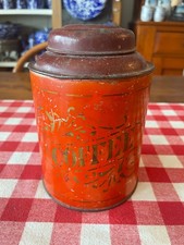 Antique Tin Coffee Bin ~ Java Store Counter Display Hand Painted Canister
