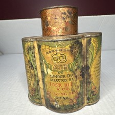 Antique Tin Metal Tack Kee Tea Canton China Original 1900 Vintage
