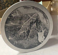 TIN ANTIQUE DRINKING CUP W/PIC OF MOUNTAIN WITH THE HOLY CROSS LAKES SEE PICS