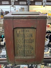 Antique Woolson Spice Co. Lion Coffee Advertising Large Wood Store Display Bin