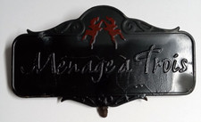 Menage a Trois Wine Double Sided Embossed Advertising Sign Metal 8"h x 13.25"w