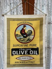Vintage Rooster Brand Olive Oil Banner. Advertising Sign Wall Hanging. Cloth.