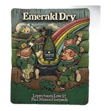 Vintage Emerald Dry Paul Masson Wine Leprechauns Advertising Sign 3D Relief