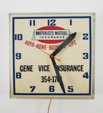 Vintage Motorists Mutual Insurance Clock Lighted Advertising Sign Works Not Pam