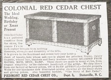 Piedmont COLONIAL RED CEDAR CHEST Statesville,NC Antique 1911 Print Ad~Gift Idea